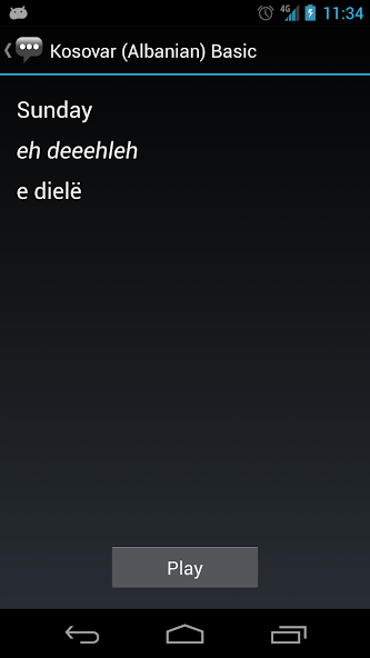 3.フレーズの詳細ページでは、Kosovar(アルバニア)フレーズは、その発音と同等の英語のフレーズとともに表示されます。 [再生]ボタンを押して、ネイティブスピーカーによる音声の発音を聞きます。