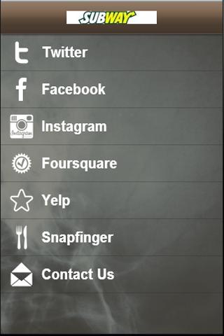 このアプリは、1941年にアリゾナ州フェニックスにあるSubway 1941です。 Twitter、Facebook、Instagramフィードをチェックできる場所。また、FoursquareとYelpでチェックインします。または、Snapfingerでオンラインで注文してください。