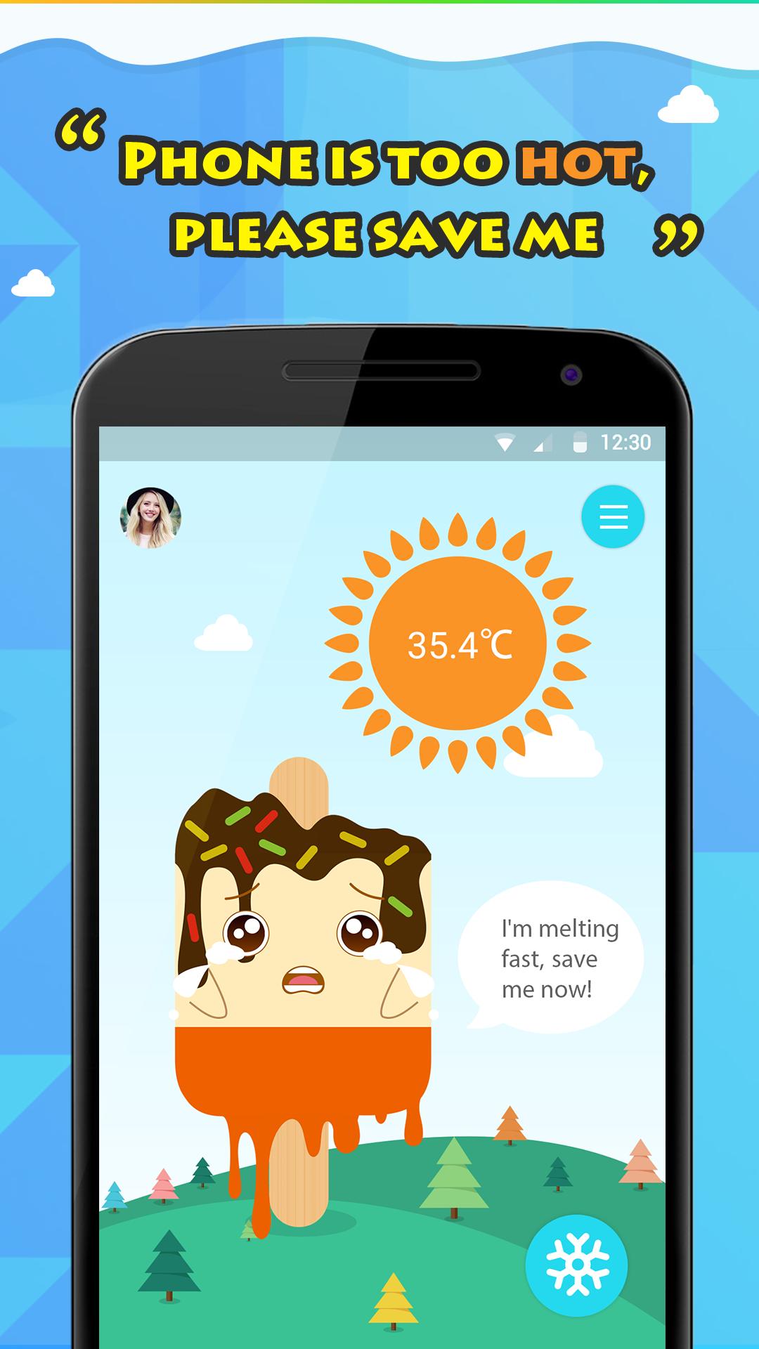 Coolme 귀여운 Ices-Pop Elf를 포함시켜 배터리 온도 상태를 다른 감정으로 생생하게 반영 할뿐만 아니라 전화를 냉각시키는 것을 잊어 버린 경우“도움을 요청하십시오”.