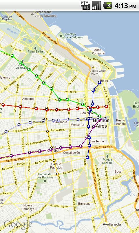 DeColectivos 버스 노선, 지하철역 및 기차역에 대한 정보