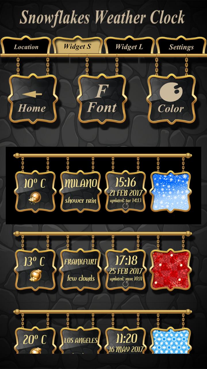 최신 ◘ Snowflakes Weather Clock 덕분에 가장 정확한 예측을 할 수 있으며 신뢰할 수있는 소스가 있기 때문에 계산할 수 있습니다. 더 이상 날씨가 어떤지 확인하기 위해 인터넷을 검색 할 필요가 없습니다. 왜냐하면 손가락 끝에 모든 정보를 바로 갖추게되기 때문입니다. 이 상위 응용 프로그램이 제공하는 위젯은 스마트 폰과 태블릿을 장식하고 새로운 모습을 제공하므로 우리가 준비한 멋진 테마를 확인하고 좋아하는 것을 찾으십시오. 다양한 모양과 크기의 흰색 눈송이로 진한 파란색 배경에 대해 어떻게 생각하십니까? 그들 모두는 멋져 보이고 날씨 위젯은 확실히 놀랍습니다. 인기있는 Snowflakes Weather Clock 제공하는 또 다른 배경은 빨간색 패턴과 황금 눈송이가있는 것입니다. 당신은 당신이 사용하기로 결정한 것에 관계없이 실수하지 않을 것입니다. 왜냐하면 그들 모두는 환상적이기 때문입니다!