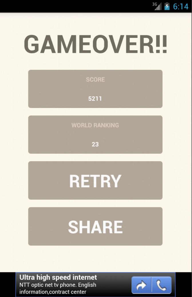 그가 얻은 점수의 순위는 게임이 끝난 후 표시되므로 세계 1 위를 목표로 최선을 다하십시오.