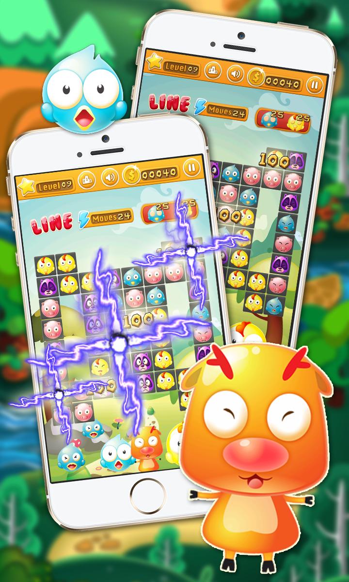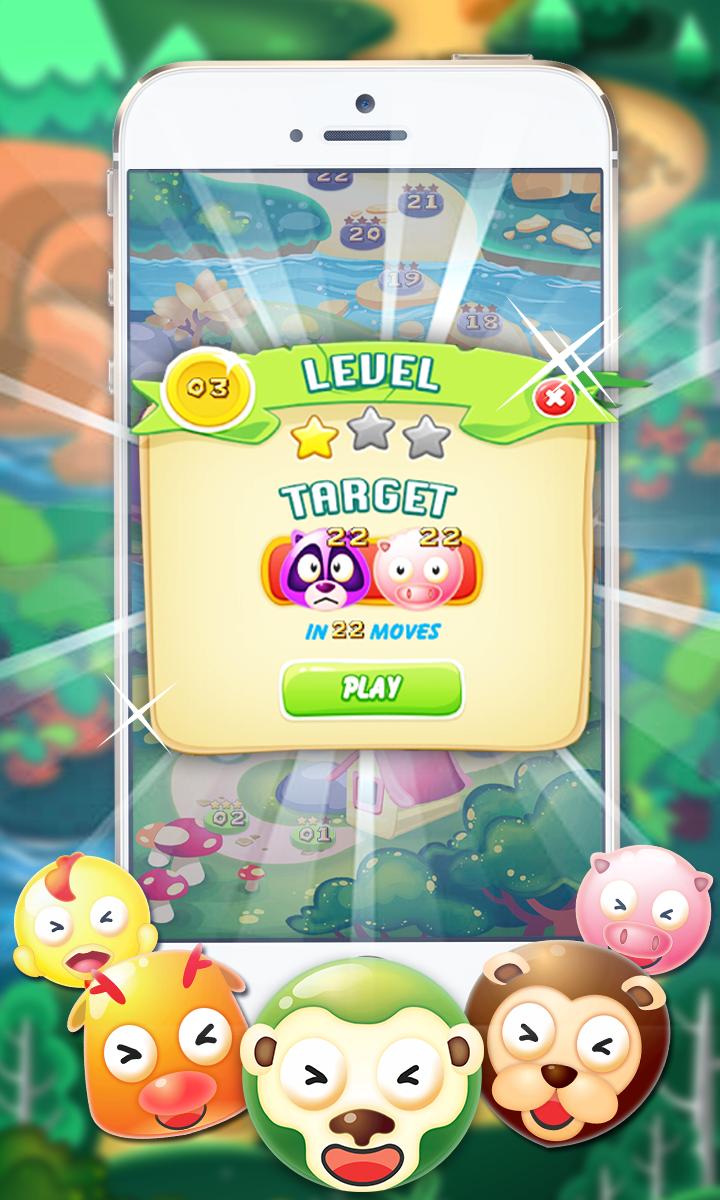● 포인트를 얻으려면 동일한 종류의 직선형 또는 수직 또는 대각선의 3 개 이상의 이모티콘을 넣고 폭발시켜야합니다.