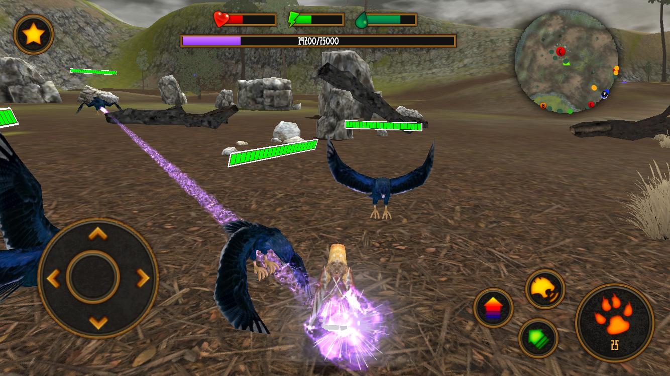 다른 적에는 새가 있습니다 : 사슴, 사슴, 곰, 오리, 늑대 및 여우. 빠르게하고 거대한지도 주위를 경주하고 적을 사냥하십시오. 그들이 당신을 데려 오기 전에 그들을 사냥하십시오. 이 게임은 야생 동물 생존, 일부 역할 연주 및 총 액션입니다.