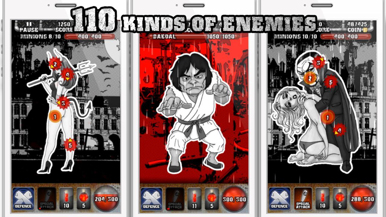 - 4 개의 다른 터치로 적을 공격하십시오! 그러나 막을 수없는 적의 펀치를 조심하십시오.