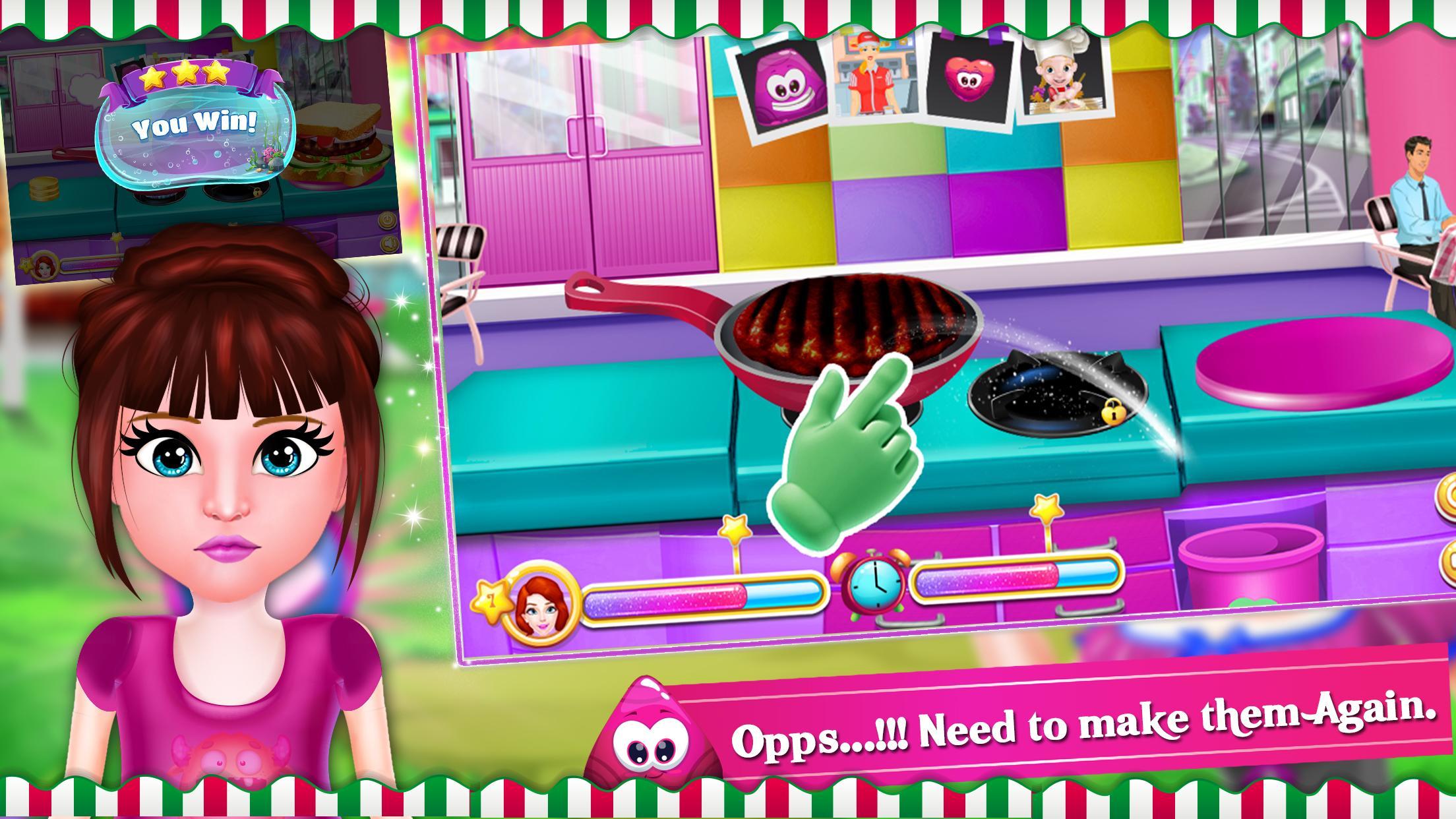 소녀를위한이 여자 게임은 식당 주방 재미 요리와 함께 푸드 코트를 가지고 있습니다. 앞치마를 요리사 모자에 올려 놓고 배고픈 고객으로부터 주문을 시작하십시오. 요리 패스트 푸드 레시피를 바르십시오. 샌드위치 제작 주방에서 최고의 시간 관리를 보여 주면서 다른 맛있는 식사를 요리하고 굽습니다.