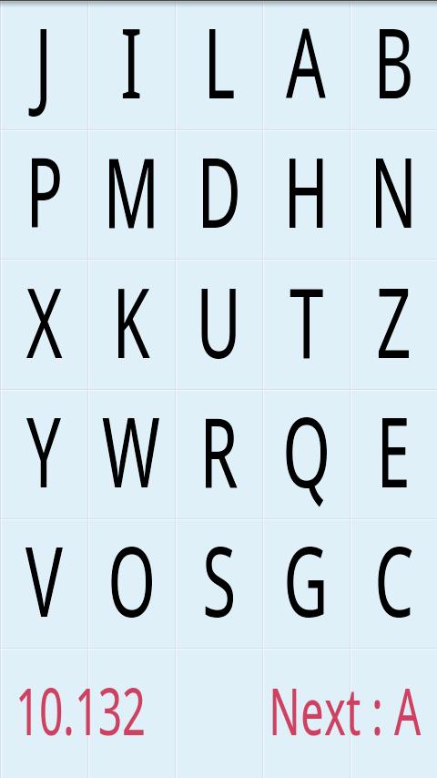 무작위 순서로 배열 된 알파벳을 만지면 시간을 측정하십시오.