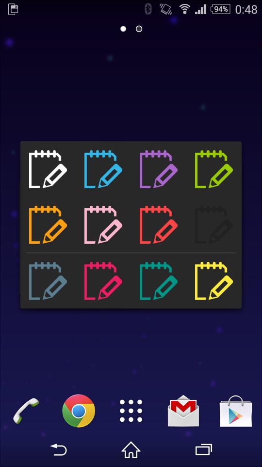 A cor de um texto de ícone pode ser escolhida de 4 cores personalizáveis e oito cores fixas.