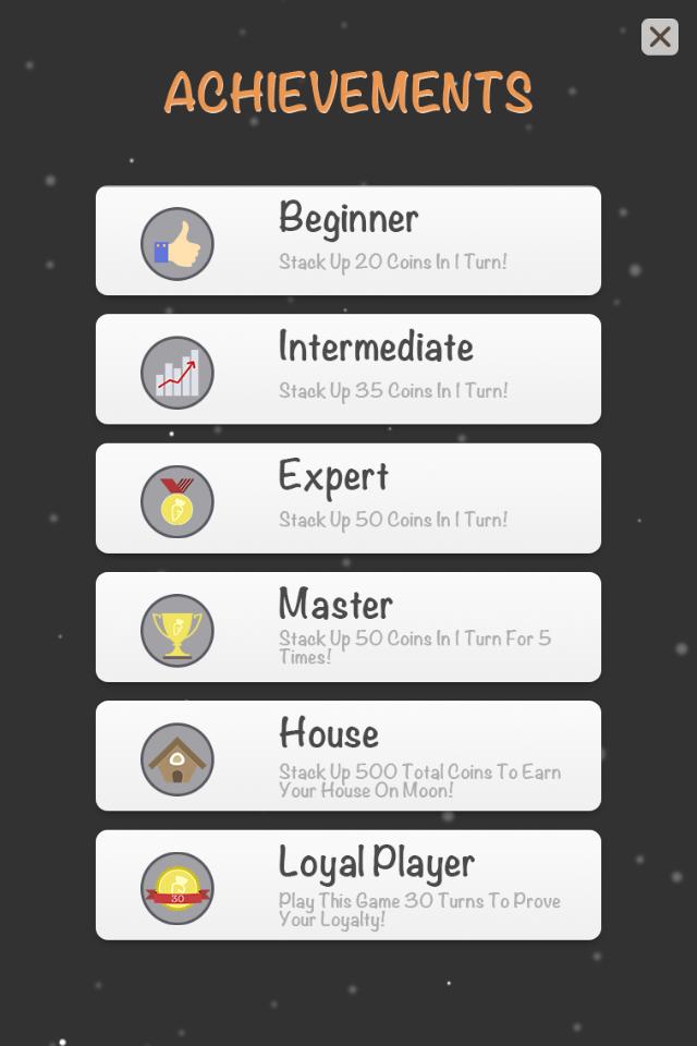 * Cada turno do jogo é final quando mais de 1 moeda atinge a plataforma ou abandonar a tela.