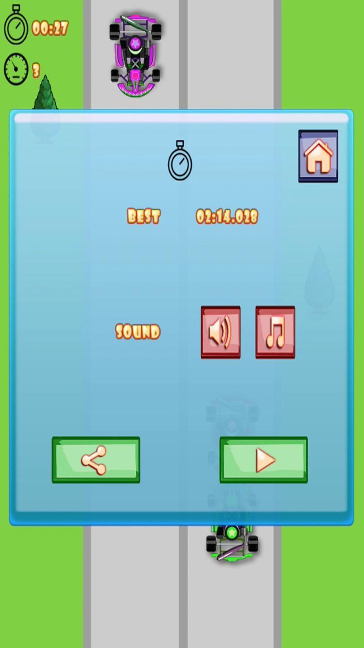 Grandes tempos de reação separam os vencedores dos perdedores nas corridas de kart. Os pilotos do Kart pensam e agem mais rápido que a competição. Com Extreme Karts , o melhor jogo de corrida, você pode testar suas habilidades de direção ao máximo. Comece seu kart e esquiva de karts que se aproximam enquanto você muda para engrenagens cada vez mais altas! Ótimos tempos de reação permitem que você continue dirigindo por mais tempo e mais rápido. Extreme Karts pontuam sua direção como os segundos e minutos em que você pode ficar na pista.