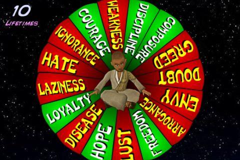 Purifique o conteúdo de sua alma enquanto eles agitam ao longo de inúmeras vidas! Simplesmente alcance a esquerda ou a direita enquanto os traços de caráter circundam sua consciência e gradualmente transformam os negativos em positivos. Somente quando você purificou sua alma, você pode alcançar a libertação conhecida como " Moksha ". Mas quanto mais você se aproxima da iluminação, a roda rápida da vida gira para jogá -lo fora! Veja quantas vidas leva você para ter sucesso.