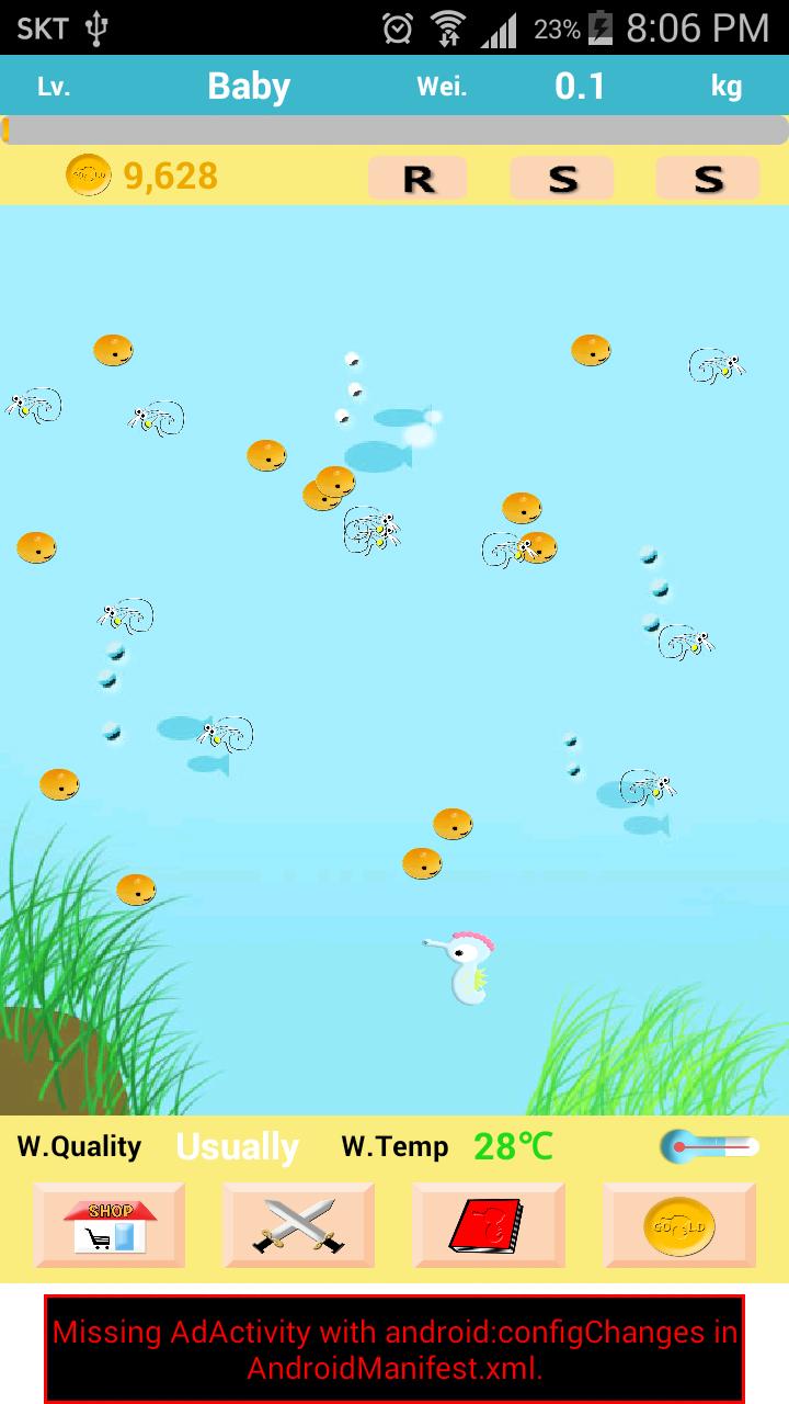 Cultive os cavalos do mar comendo os alimentos flutuando no mar.