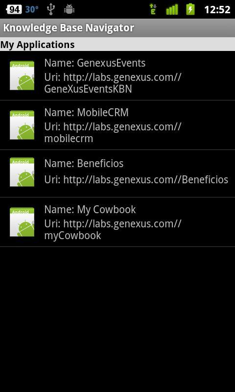 Пользователи создают свой KB с GenExus, и они могут получить доступ к данным приложения, используя устройства Android.