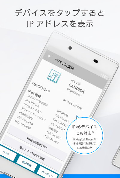 « Magical Finder » - это приложение, которое легко находит и устанавливает сетевые устройства, такие как IO Data NAS, маршрутизатор, точка доступа и камера network, подключенные к той же сети локальной области.