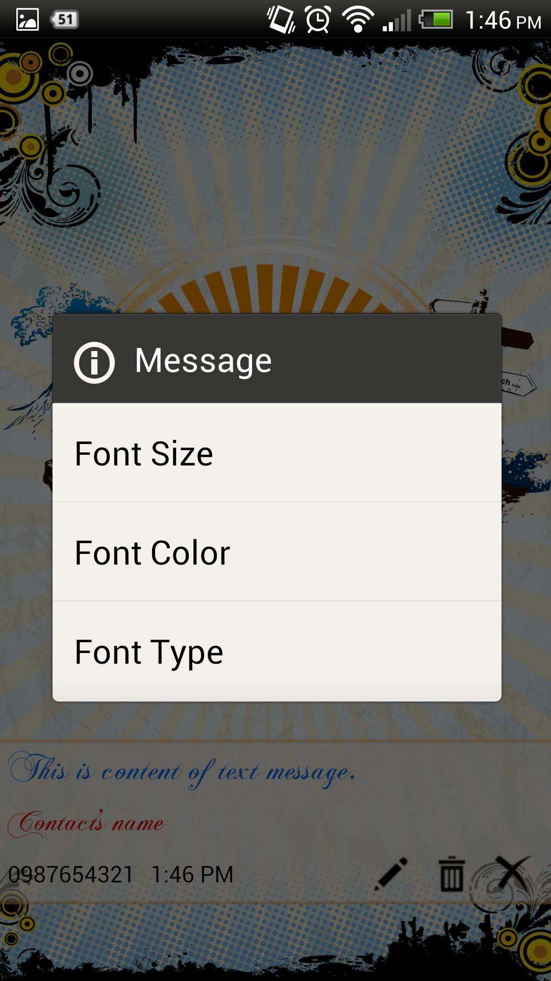 3. Редактировать тип шрифта содержимого текстового сообщения, имя контакта, номер телефона