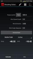 Shooting Solution Free - точный, простой в использовании баллистический калькулятор. Он использует простой основной интерфейс, но включает в себя более продвинутые функции, такие как создание таблиц и график. Условия окружающей среды, которые могут быть обновлены на основе местоположения GPS или широты/долготы, учитываются в расчетах.