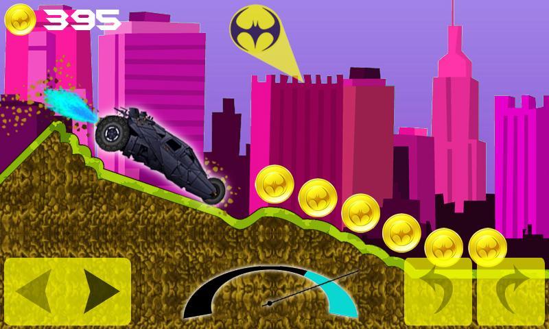 Контролируйте летучую мышь супергероя как гонщик в гору, чтобы подняться на холмы с наиболее реалистическим контролем. Столкнуться на все проблемы Готама города в гору и склоне. Супергероя летучая мышь очень злится на преступников в Городе Готам, он хочет участвовать в гонках и подняться на гору со своей супер -машиной. Во время подъема на вершину вы можете выбрать другие супер -транспортные средства, такие как автомобиль, Jeep, Hill Climb Truck и Bike. Вам нужен транспорт и получить высокий счет, чтобы выиграть в этой игре. Кроме этого, вы также можете модернизировать свой автомобиль и транспортировать на холмах, за рулем и лазанием.