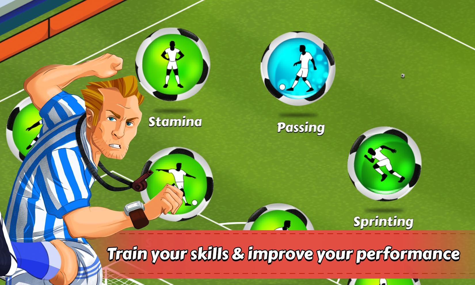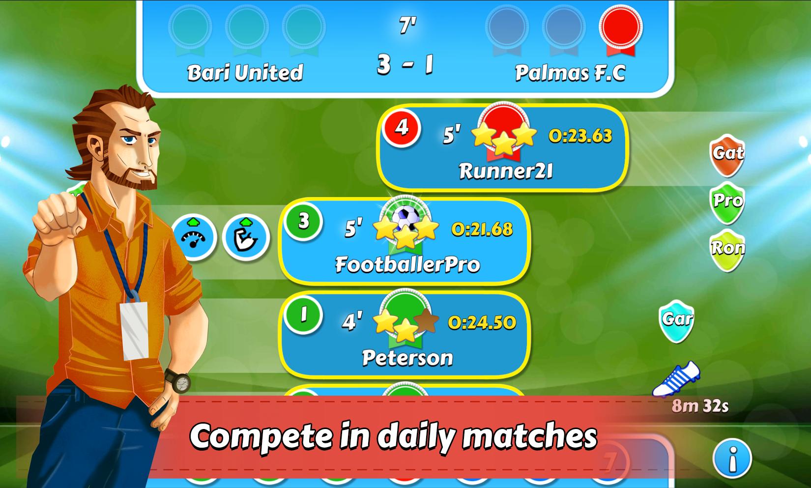 Получите награды от матчей, сражений и проблем, чтобы построить свою футбольную карьеру.