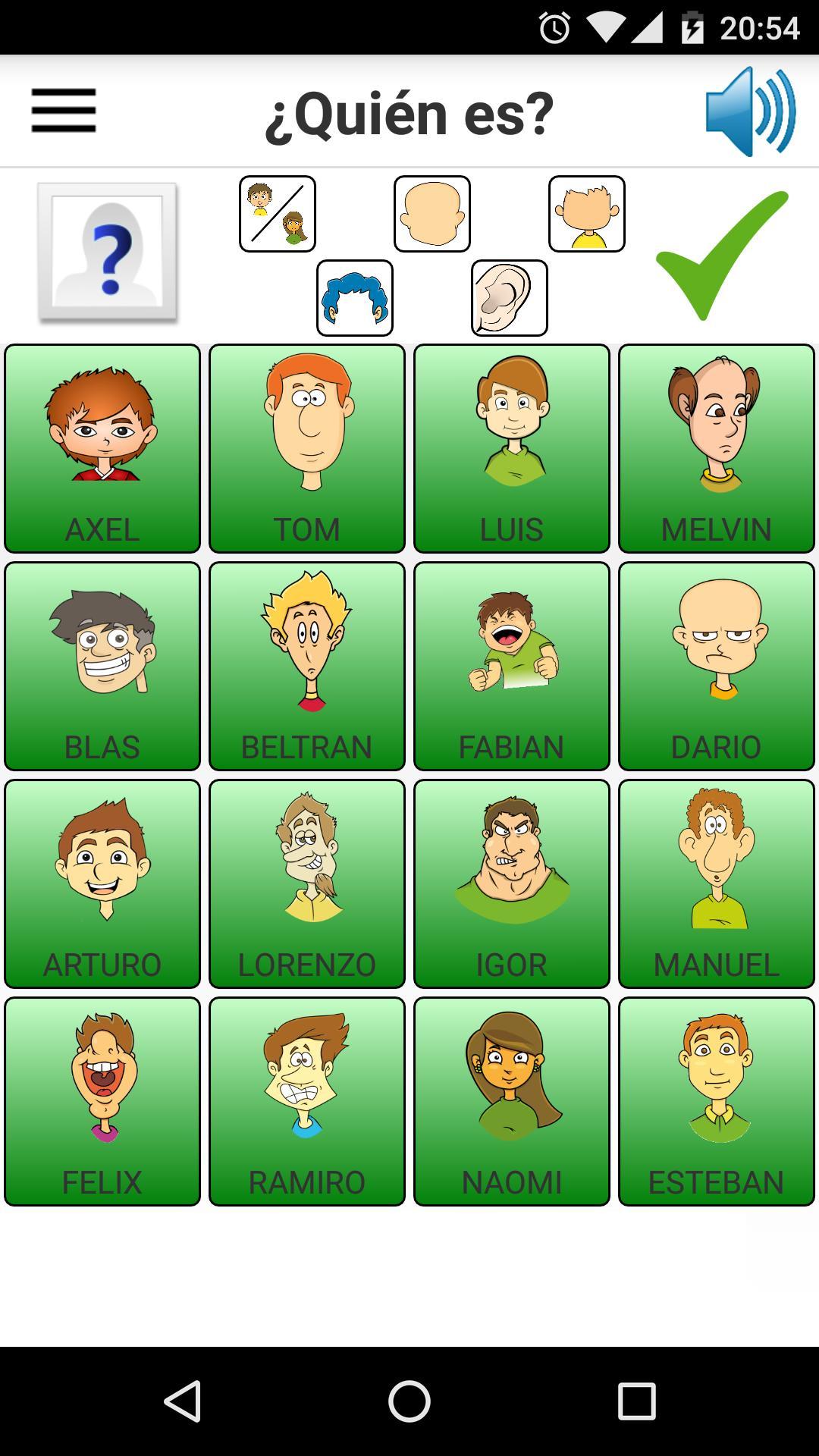 Когда вы уже знаете, кто такой скрытый персонаж, нажмите на значок «Зеленая проверка» в правом верхнем углу экрана. Он откроет всплывающее окно со списком символов доски, которые все еще без креста и должны будут выбрать, кто, по нашему мнению, является скрытым персонажем. Если у нас есть сомнения, мы можем закрыть всплывающее окно и продолжать задавать вопросы.