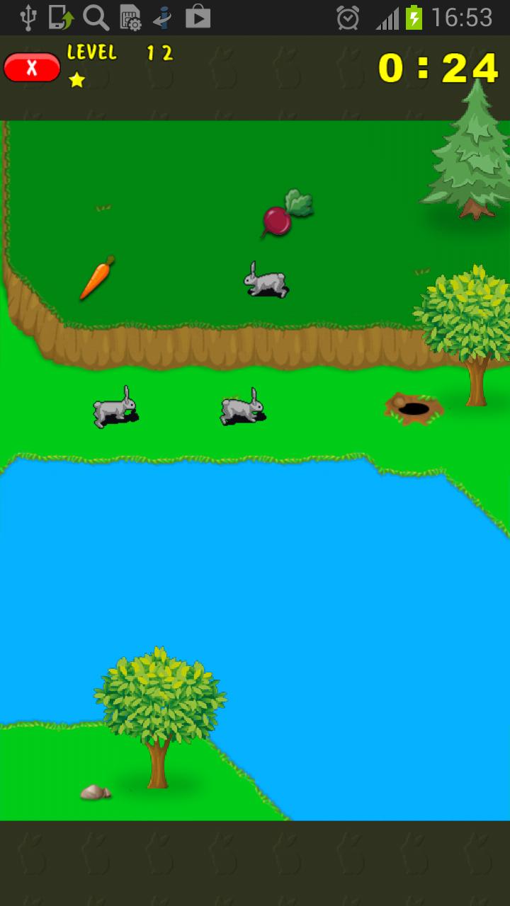 До начала уровня вам будет предоставлена информация о максимальном времени бега кроликов, максимальном количестве пищи, которую они могут есть, а также о количестве ловушек и самих кроликов.