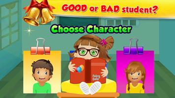 Эта плохая игра для девочек позволяет вам делать уловки и плохие вещи в комнате в классе, не попавшая в беду.
