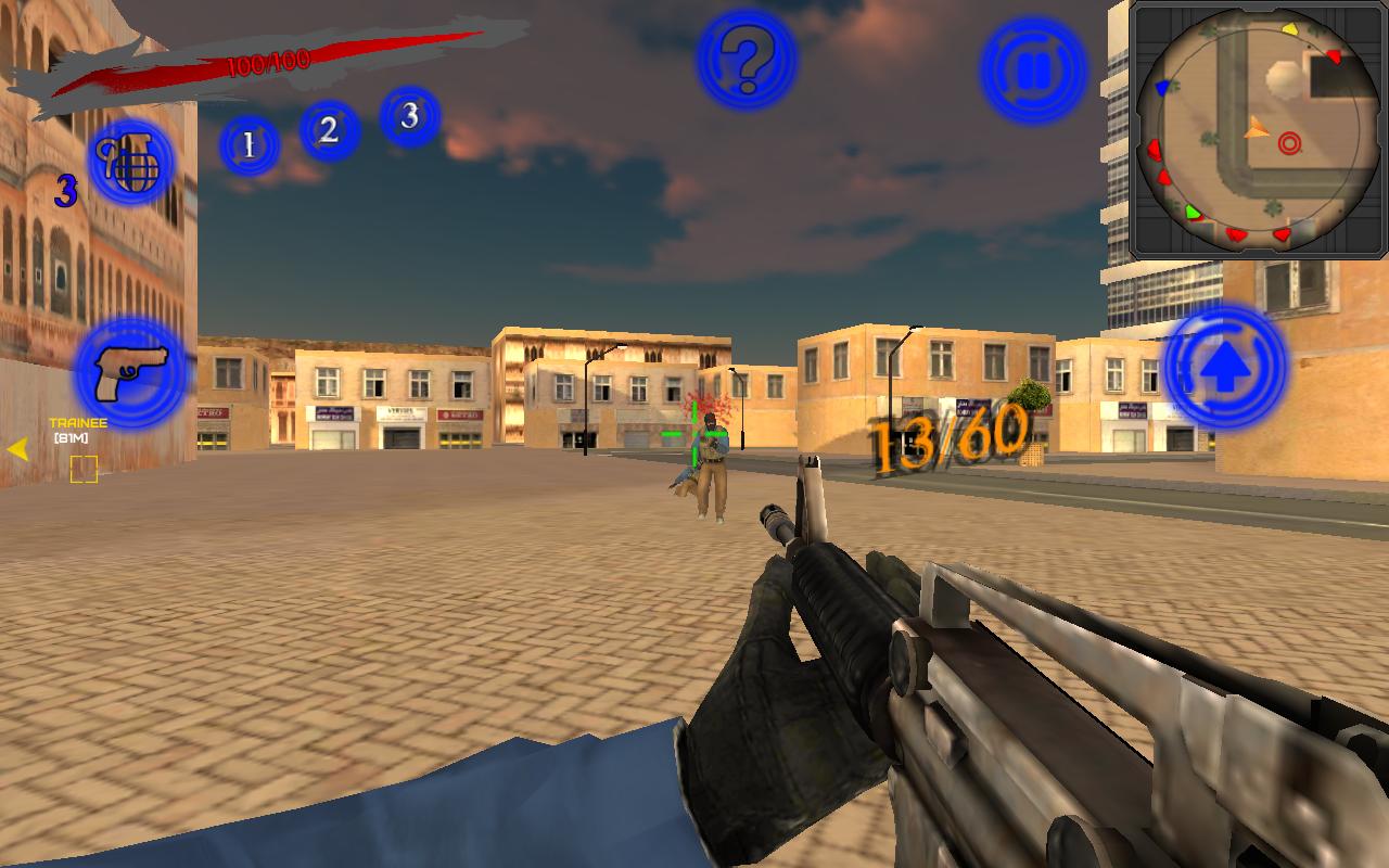 Вы появляетесь в городе, полном врагов, имеете пистолет с 12 боеприпасами, ножом и должны выжить. Полные миссии, получайте средства, купите новое оружие и накажите их все. Охота на террористов как настоящих коммандос. Выстрелы в голову дают вам больше денег.