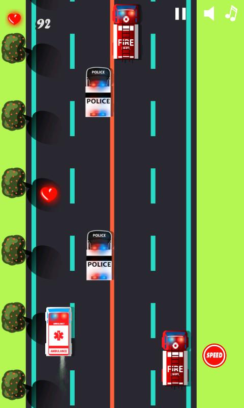 Нажмите кнопку N2O Nitro в Trucks for toddlers ускорили скорость. Ваша цель в этих играх скорой помощи состоит в том, чтобы ездить так долго, как вы можете в симуляторе 911, избегая автомобилей скорой помощи. Так что наклонитесь, чтобы направлять пожарную машину для малышей вдали от других горячих колес и собирайте красные сердца как можно больше в приложении для детских автомобилей. Маленькая гоночная девушка также получает дополнительные очки, если она поймает прилагаемые контрольно -пропускные пункты вдоль дорожного движения. Автомобильные игры скорой помощи для детей бесплатно довольно интересны, но не так легко играть.