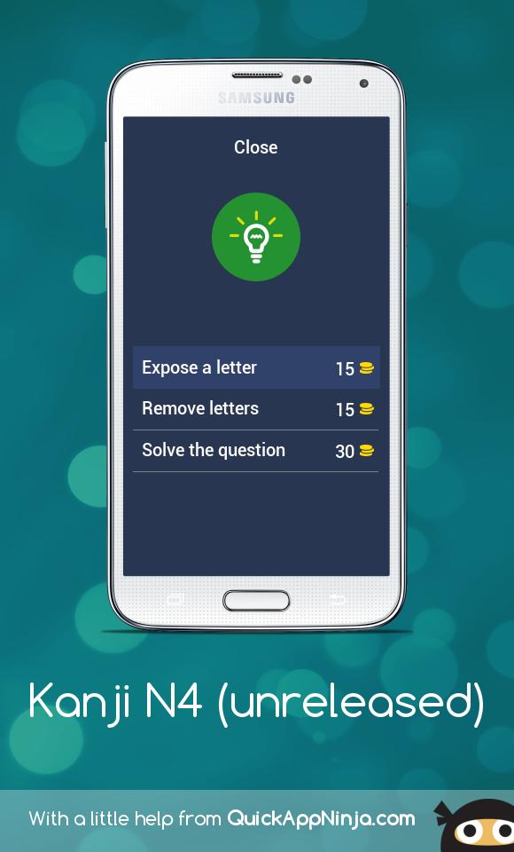 เปิดเกมและแตะ "เล่น" คุณจะได้รับภาพ เป้าหมายของคุณคือการเดาวิธีการอ่านจากคันจิ! มีตัวอักษรให้คุณพิมพ์ด้วย แตะตัวอักษรเพื่อวางไว้บนกระดานเกม การแตะตัวอักษรอีกครั้งจะลบตัวอักษรออกจากบอร์ดเกม