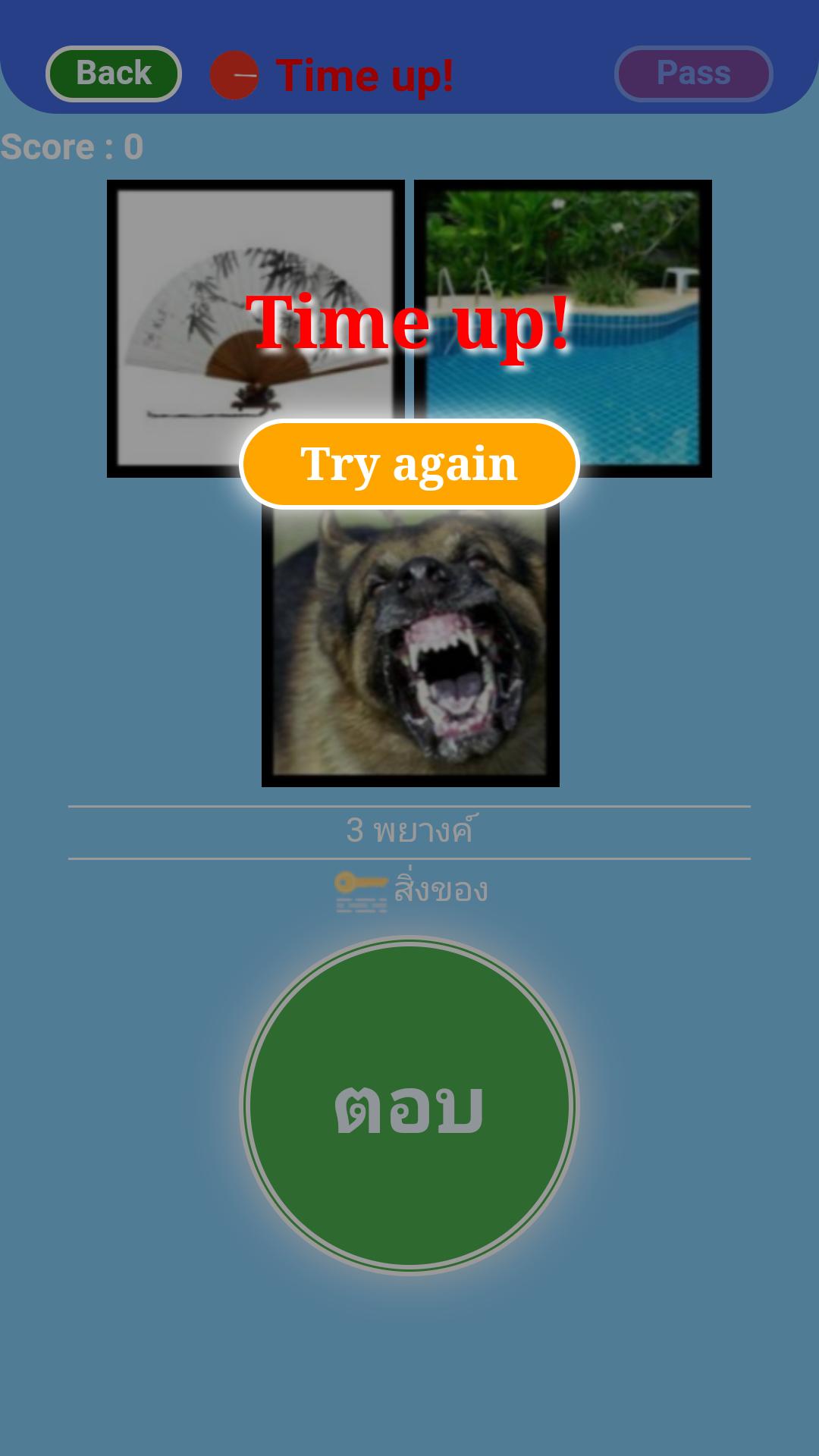 玩家将不得不选择在游戏中玩游戏,有2个级别可供选择,然后从每个图像中显示的图像中查看和思考并正确回答。每个图像都会愚蠢地答案是什么,并且会有提示是正确响应的另一种帮助