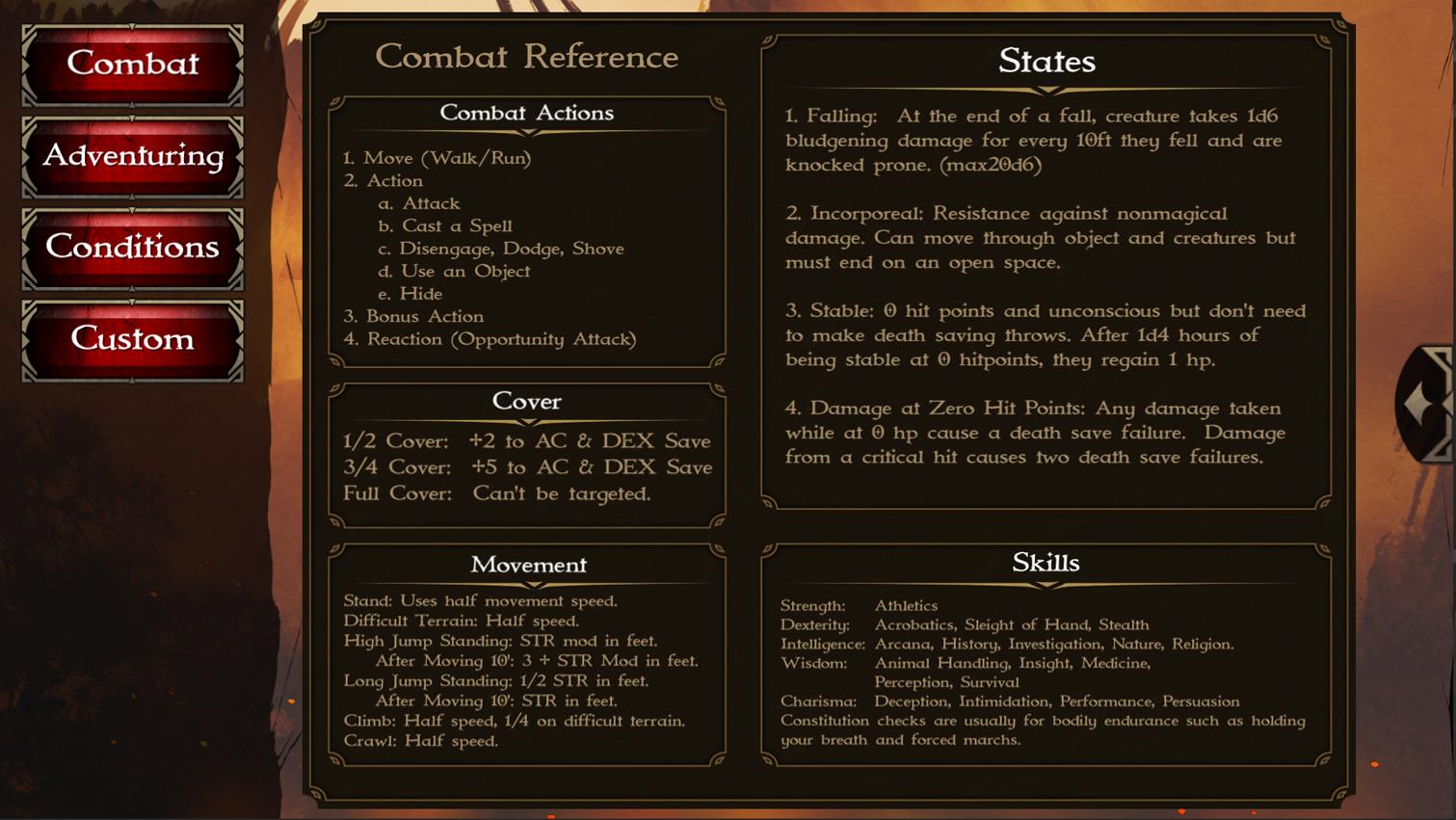 还包括骰子辊,参考页和随机战利品发生器。我们一直在努力添加更多功能,并一直在寻找有关改进的反馈。