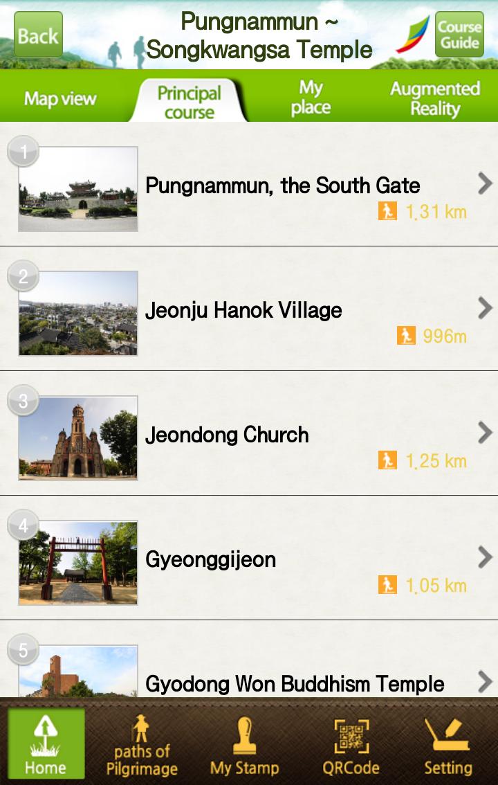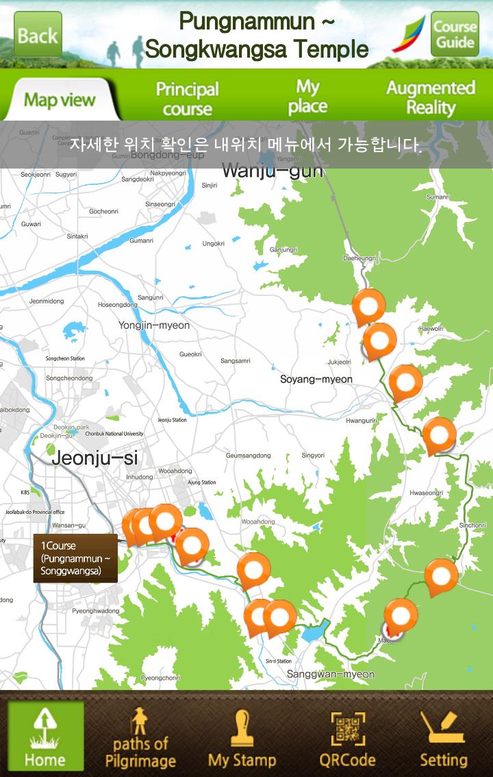 該應用程序引入了Sunryegil,這是一條在Jeollabuk-Do開發的朝鮮朝聖路線,以供宗教和諧。整個路線由九門課程組成,從全場Hanok村開始,並以圓形形式延伸240公里,以完成您的旅程。
