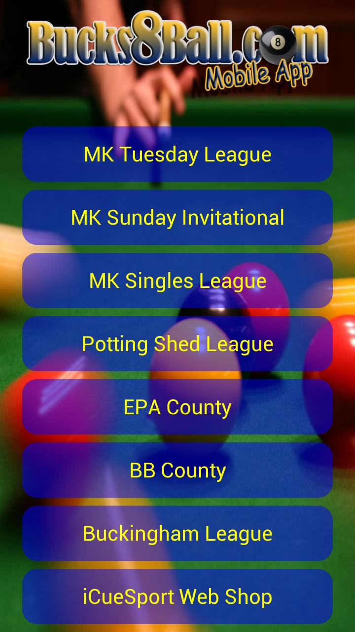 應用程序查看Bucks8Ball網站聯盟頁面。