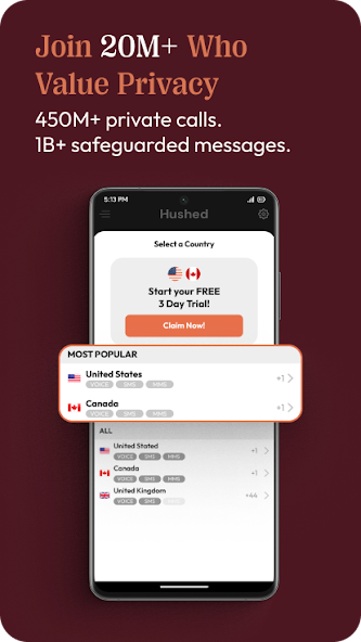 從300多個區域代碼中的電話號碼中選擇,然後立即開始致電和發短信。沒有人會知道您是從一個Hushed電話號碼打來的。
