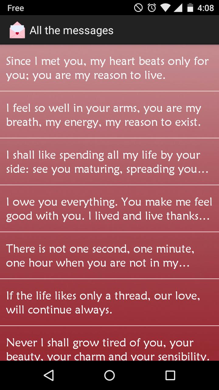只需啟動應用程序,選擇要發送給情人的短語並將其發送。句子可以按類別提供,您可以保留自己喜歡的短語。