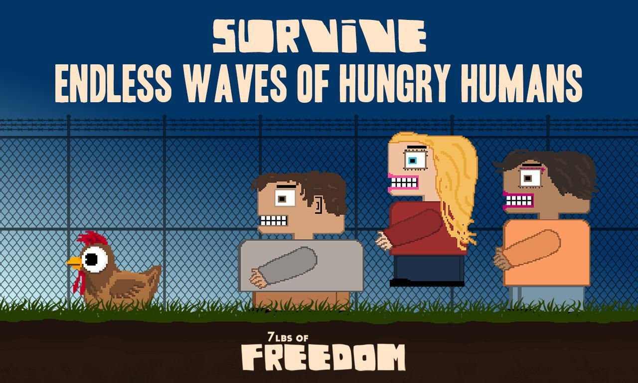 7lbs of Freedom是一個充滿活力的人類踩踏遊戲,充滿了狹窄的逃脫和令人滿意的捕獲。當您忍受無盡的飢餓人類的浪潮時7lbs of Freedom他們的目標是追求並捕獲赫伯特雞以對他盛宴。踩踏人類為您的分數增加積分。