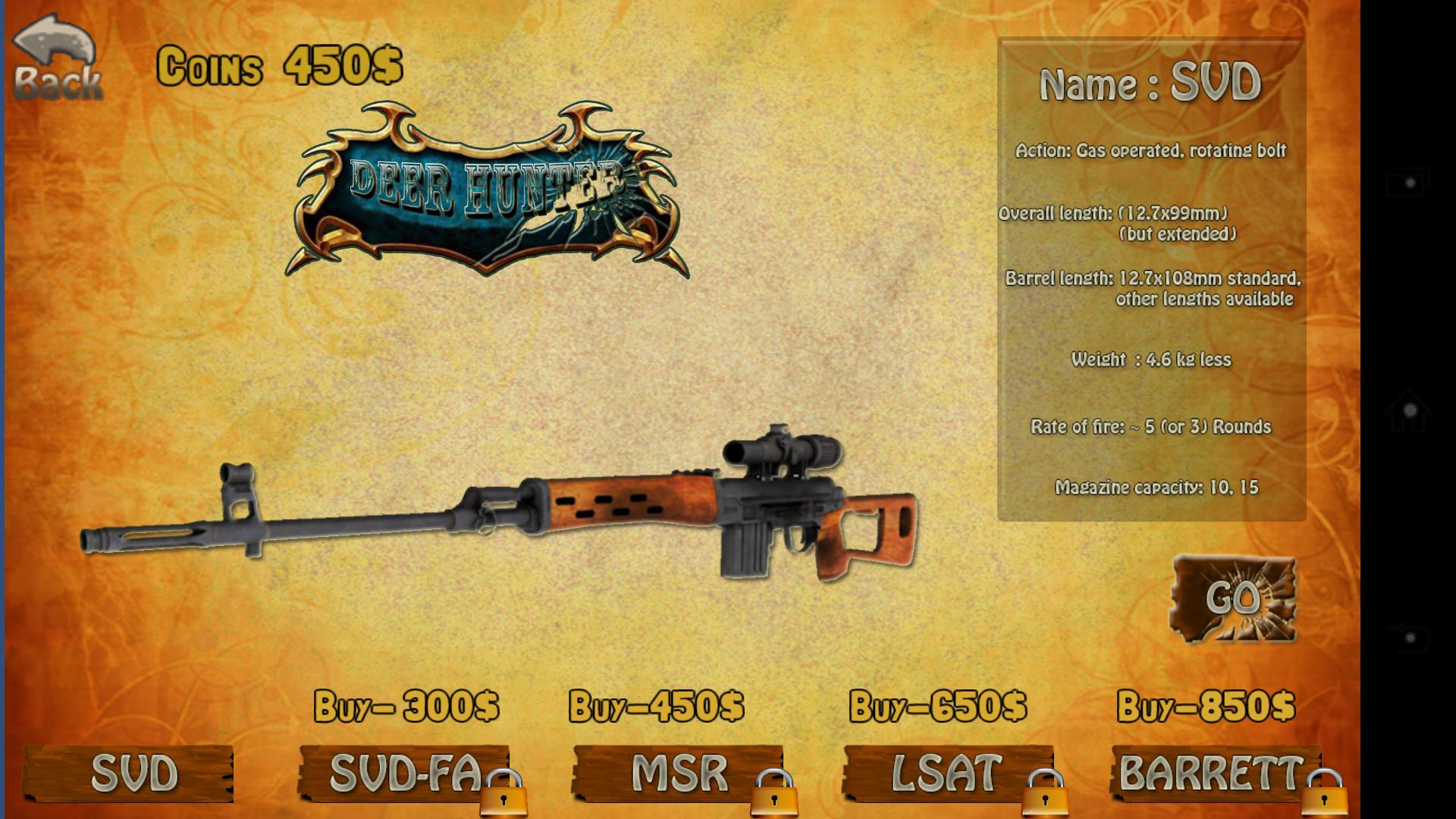 該遊戲配備了多個槍支,您可以用這些槍支在完成每個級別後賺取的錢。沒有真正的錢。因此,它是一個完整的免費娛樂包,用於在森林中狩獵。