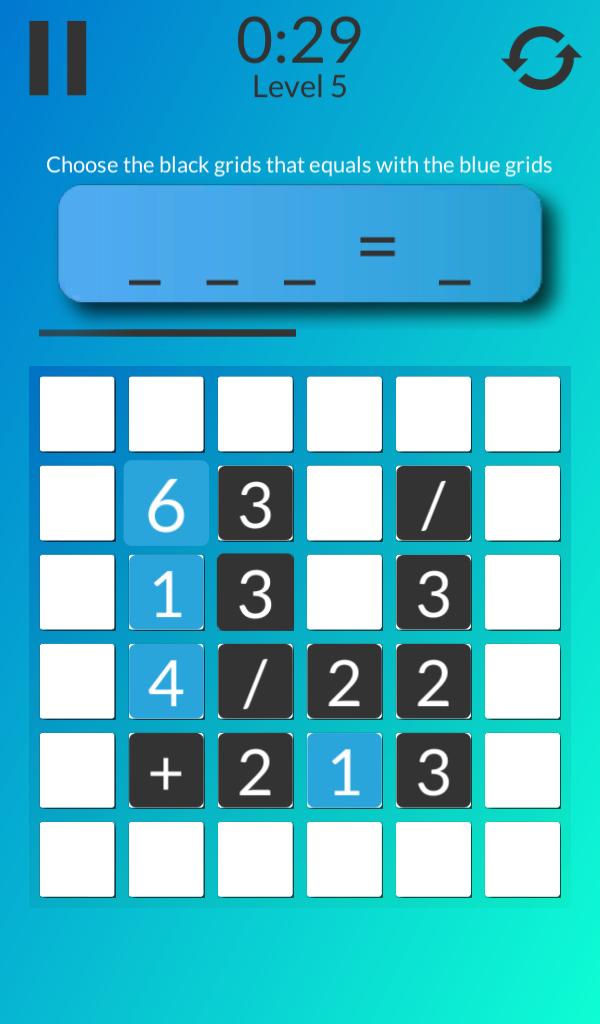是一款具有挑戰性的益智遊戲,需要您的數學和邏輯思維能力。您可以選擇兩個數字和使結果以藍色正方形為單位的操作數。確保在計時器用完之前解決所有數字。每當您解決所有數字時,級別都會上升,難度也會上升。