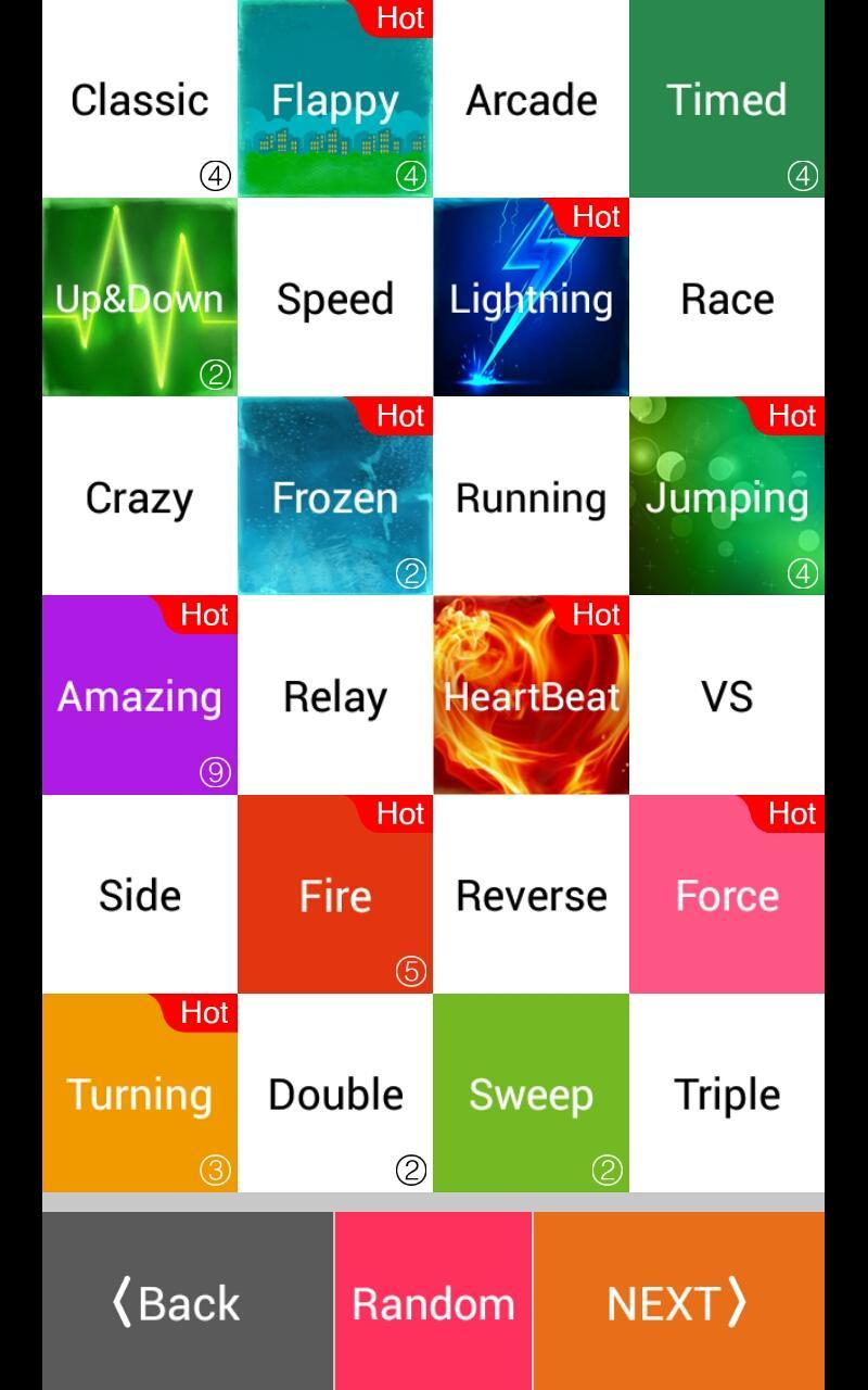 - [冒險模式]:紅色格子危險的黑色格子混合在中間,不要觸摸它們。